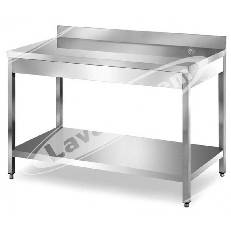Tavolo Inox Professionale su Gambe con Ripiano e Alzatina cm 100x70x85