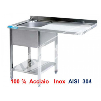 Lavatoio Inox 1 Vasca con Vano Lavastoviglie a Destra cm 120x60x85