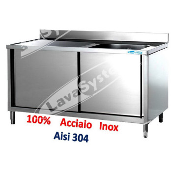 Lavello Inox Armadiato con Ante Scorrevoli 1 Vasca e Gocciolatoio cm 140x60x85
