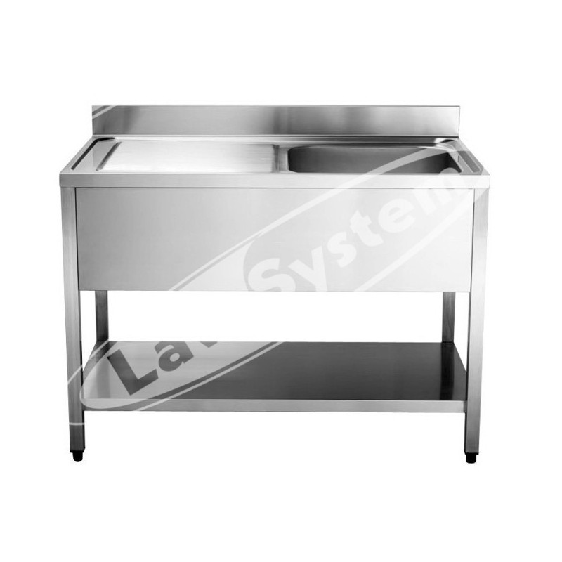 Lavello Inox 1 Vasca con Gocciolatoio a Sinistra e Ripiano cm 120x70x85