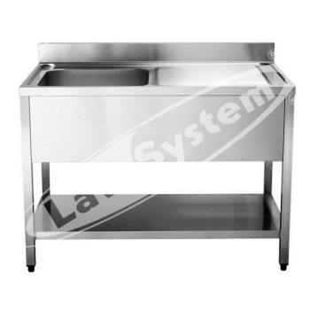Lavello Inox 1 Vasca con Gocciolatoio a Sinistra e Ripiano cm 120x60x85